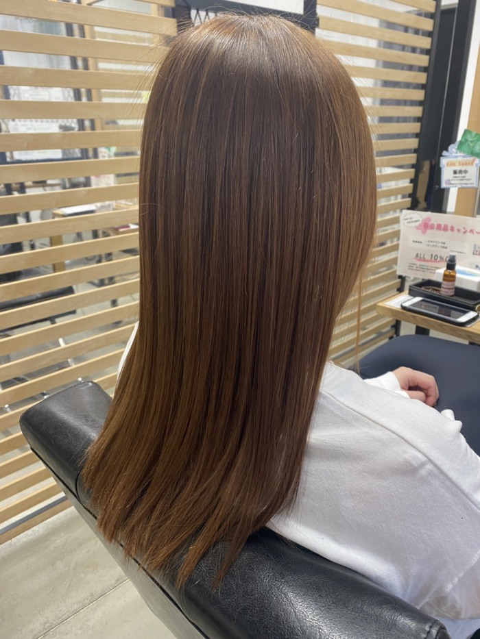 カラーの放置中にもその栄養分が髪の毛の中にしっかり入り、ケアをしながらカラーもできる仕組みです☆